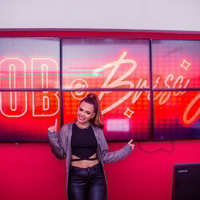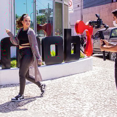 The main idea was to create a music video featuring Brisa Star literally walking through the Mob building and interacting with company employees. The music video was shot in a continuous take format, without cuts, which required a lot of study and planning since it involved many people. On the same day, the production of photos for the campaign's graphic materials was also carried out.