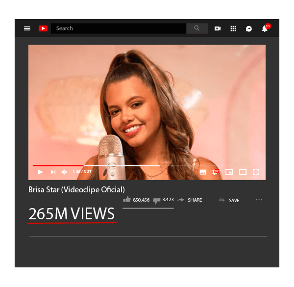 While we were planning the campaign, a superstar singer would be achieving tremendous success on the internet. Her songs were trending on social media and dominating the top of the charts on streaming platforms, amassing millions of views. Her name is Brisa Star, amassing over 260 million views on her most successful music video on YouTube alone. When you tally up all her streams, her numbers soar to 700 million views. A genuine phenomenon, and of course, we couldn't miss the opportunity to leverage the image of the singer who was the true trend of the time.